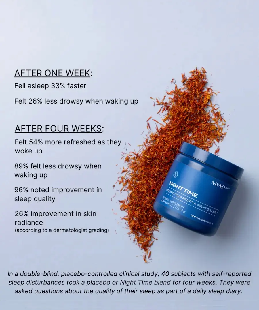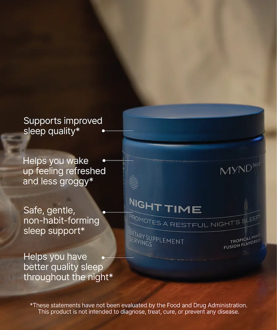 Absolutely. MYND360 Night Time is great for helping you shift your sleep-wake routine when life happens. Whether you’re dealing with jet lag, night shifts, or low melatonin that comes with aging, MYND360 Night Time can help you sleep dreamy and wake up ready to conquer your day.